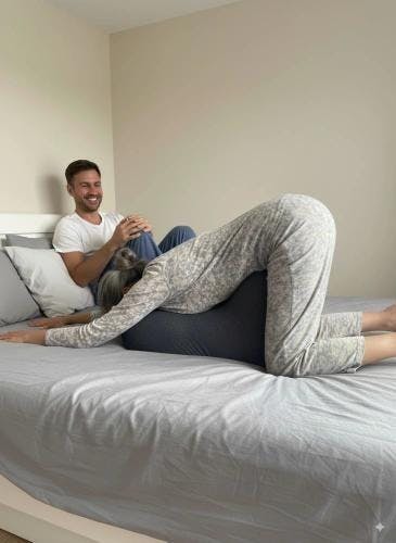 Place the Moodie Pillow under her hips during intimacy with the wider end supporting your lower back. The 27° angle naturally positions your body for optimal comfort and support.