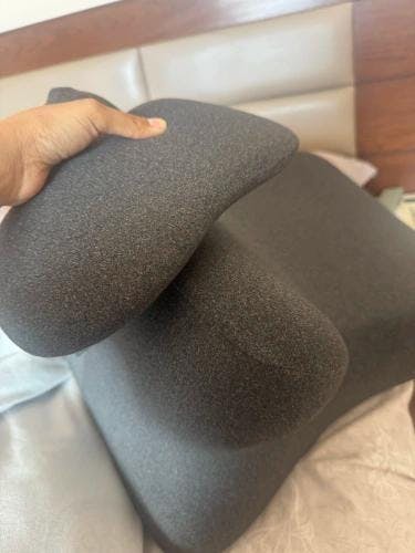 Love that this just looks like a nice throw pillow on our bed. No awkward explanations when my mom visits. But wow does it make a difference when we use it.